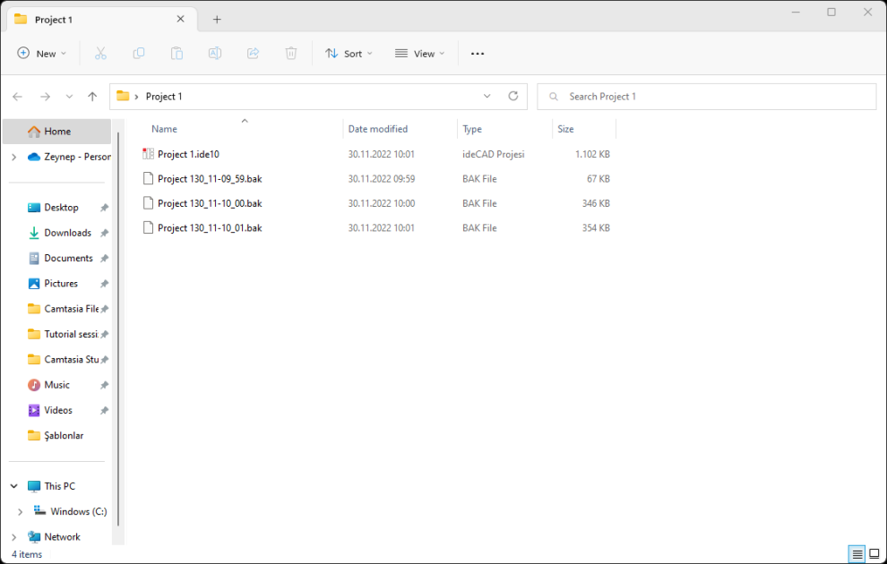 If Autosave is active, backups with .bak extension will be created in the folder where your project is registered.