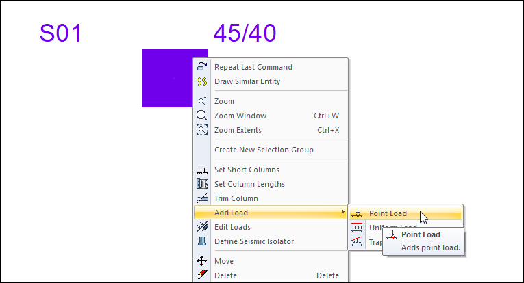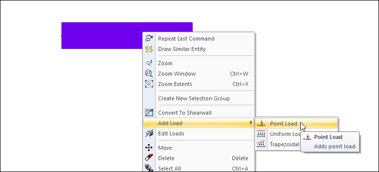 From the menu that opens, go to the Add Load line and click the Point Load line from the sub menu.