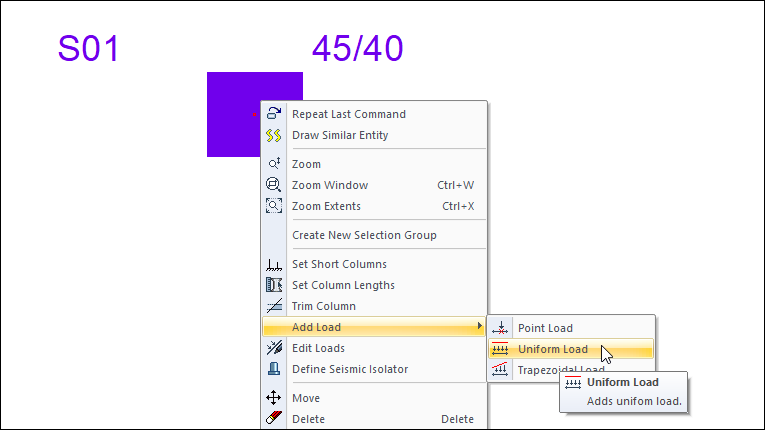 From the menu that opens, go to the Add Load line and click the Uniform Load line from the submenu .