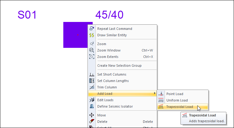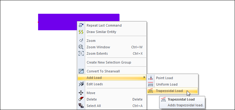 From the menu that opens, go to the Add Load line and click the Trapezoidal Load line from the submenu.