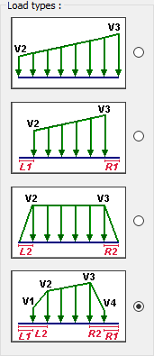 In the menu that opens, you can define the loads with the size and geometry you want by using the options under the heading add load.