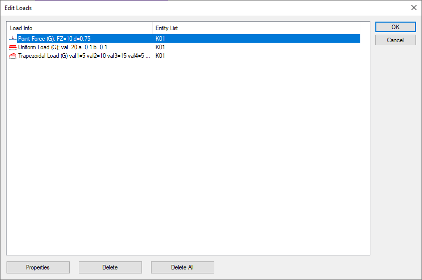 Create the report. At the end of the reports, the information of the loads you defined will be printed.