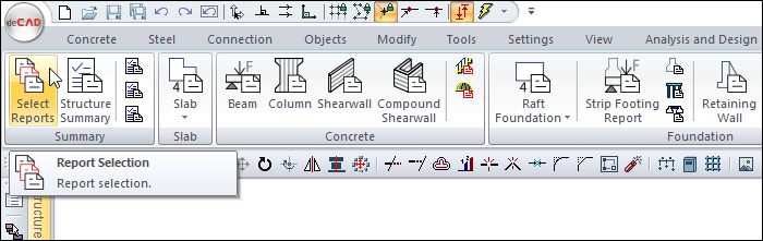 Come to the end of the list in the Structural Report Settings dialog that comes up.