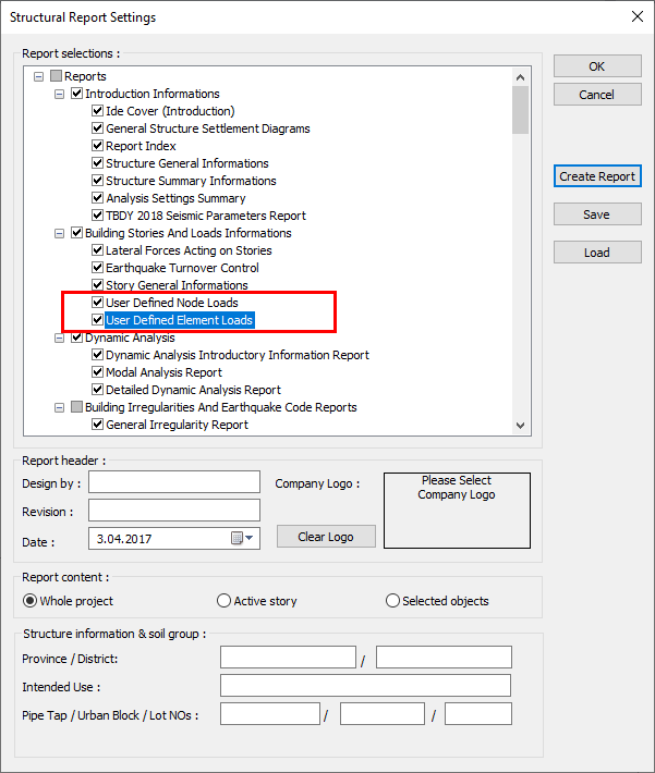 User loads defined on shearwalls in the program cannot be displayed in reports.