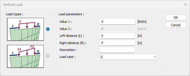 Value (F) ![]() Enter the value of the load in the working unit. |
