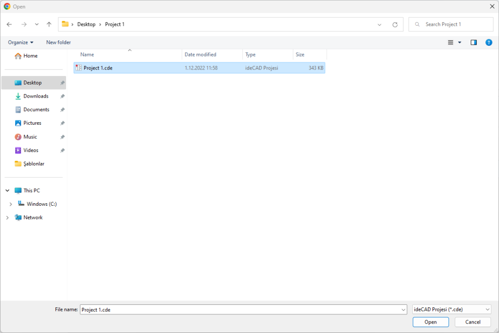 In the dialog that opens, select the ideCAD project file with the *.cde" extension that you want to add.
