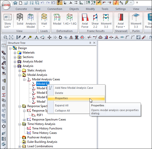 Increment the "target number of modal numbers" that can be entered in Modal E1,E2,E3,E4 and if any, Modal BE1, BE2, BE3, B4, Modal' and Modal B' installations listed under Analysis/Modal Analysis/Modal analysis from the structure tree and repeat the analysis.
