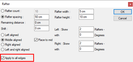 Click the Rafter icon in the ribbon menu (you can select a roof detail you want).