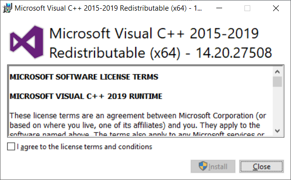 Microsoft Visual C ++ 2015-2019 Redistributable Package (64 bit)