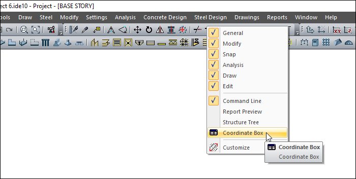In case the coordinate box is lost, the way to retrieve it is different in the ribbon and classic menu layout.