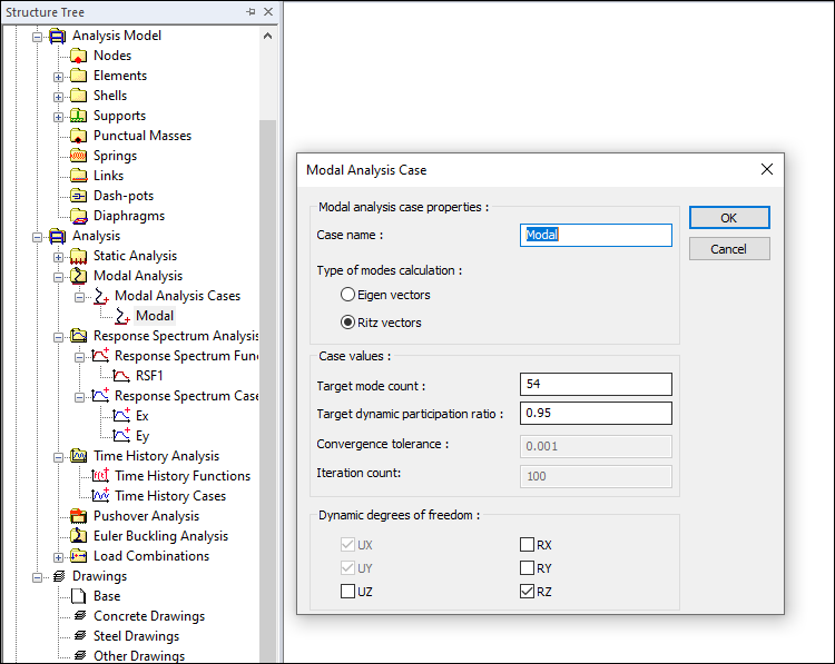 You can change the target mode count by entering Modal properties in Analysis/Modal analysis case from the structure tree. The repetition of the error indicates that the number is not sufficient and the number of modes is increased again. In addition, by choosing Ritz vectors from the modal calculation methods, you can provide as much mass participation as required with less mode number.