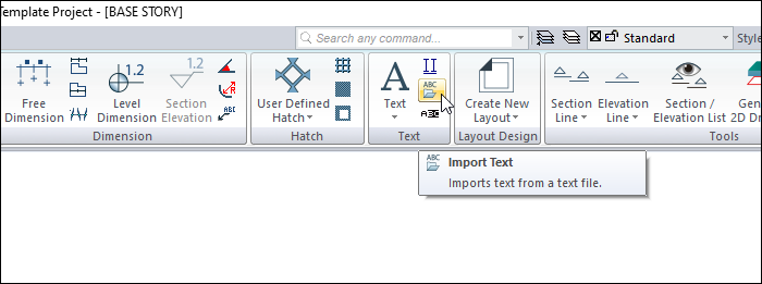 Click the Import Text icon in the ribbon menu .