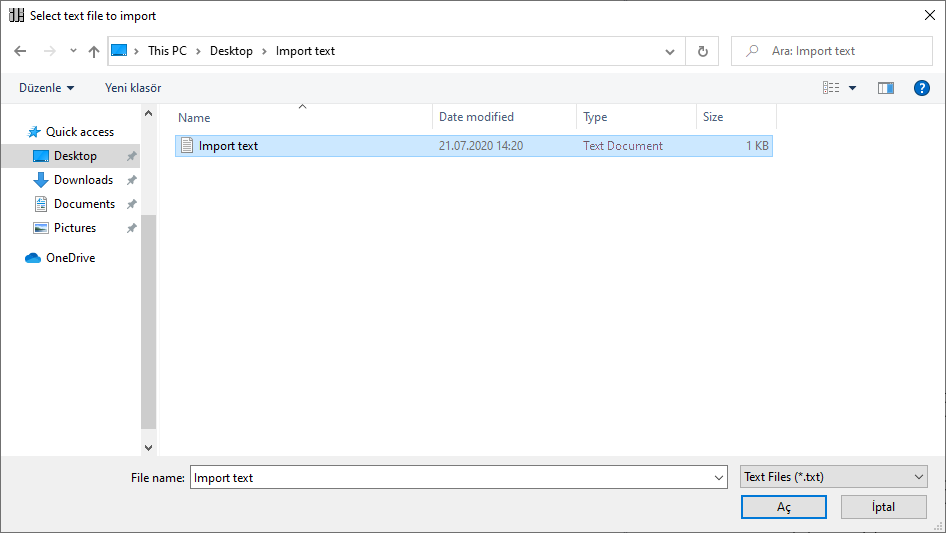 Select the text file you want to import from the window that opens and click the OK button.