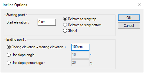 The Incline Options dialog will open after the process . Enter the slope related parameters in the dialog.