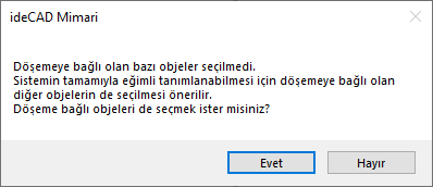 Press the right mouse button again. The program "Some objects at slab boundaries are not selected. Selecting slab’s boundaries for setting incline as a whole structure recommended. Do you want to select slab boundary objects?” will ask the question.
