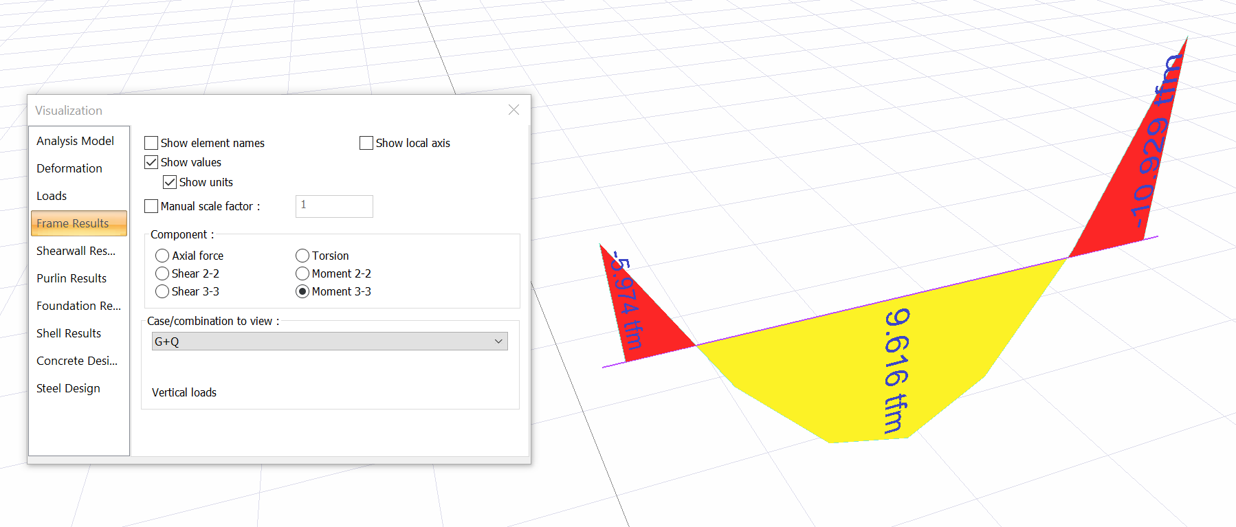 In this example, Dead loads are increased, so that the bending moment value of the element is greater than the cracking moment value of the element.