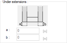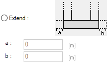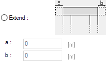 Extend ![]() With this option, the bottom part of the jamb element is separated from the vertical parts and also the bottom parts can be protruded to a certain length from the right and left. The extension values can be given in the lines named "a" and "b" in the dialog below. |