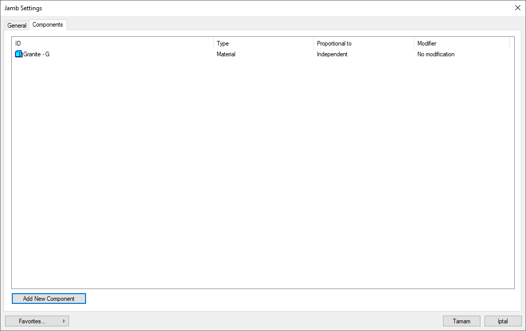 Volume | It means that the volume measure found when defining the material will be used by multiplying it by the volume of the jamb. | |