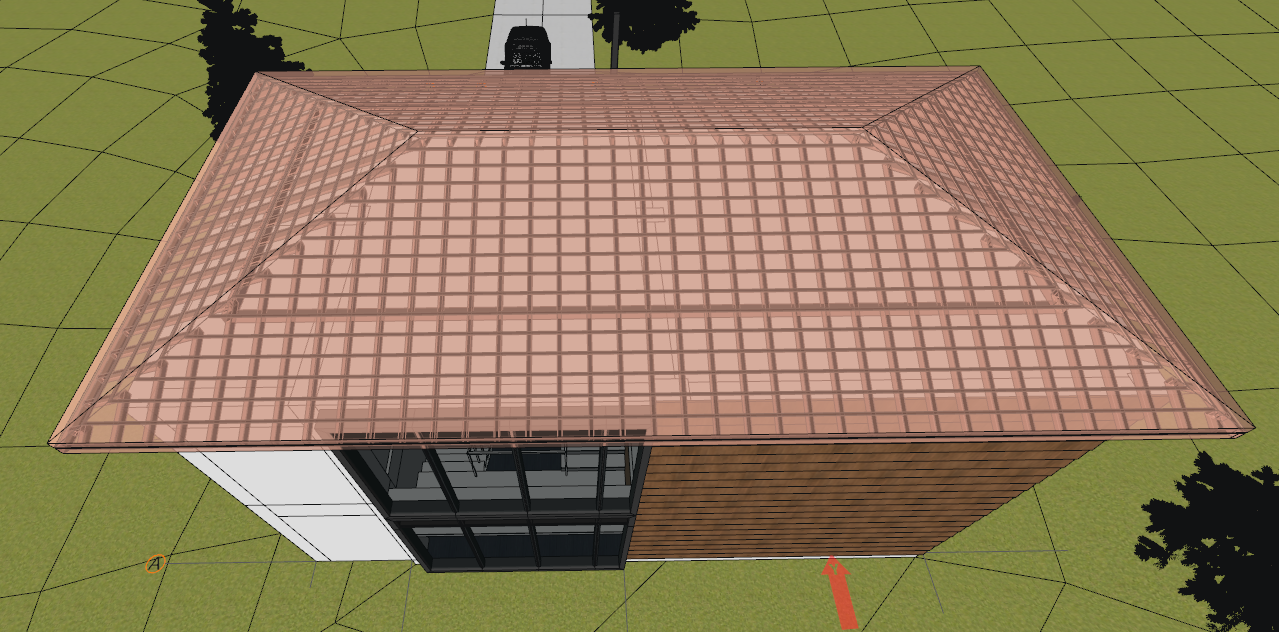 Click with the left mouse button on the roof eaves you want to create a lath.