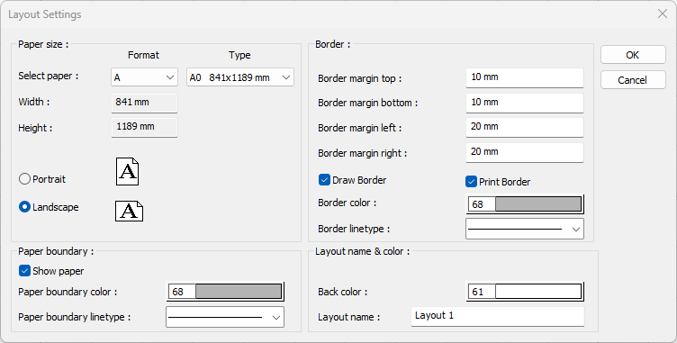 While creating a new layout, the layout settings dialog appears. With the layout settings command, the layout settings dialog of the created layout opens.
