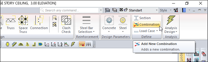 These combinations, created according to TBDY 2018 and TS500, are used to determine the most unfavorable design in element reinforced concrete.