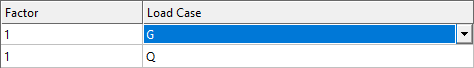 Factor and load case ![]() Specify which load cases to use for the combination. Select the load cases from the list. Enter your factor. |