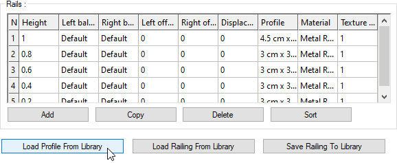 Clicking the load profile from library button in the railing settings dialog ![]() |