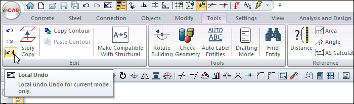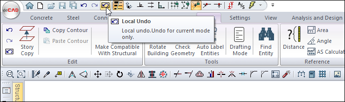 With the Local Undo command, the last click is undone in object commands that require constant clicking (wall, beam, shearwall, path, etc.).