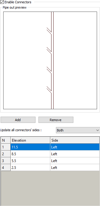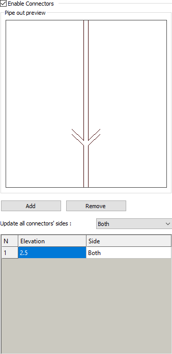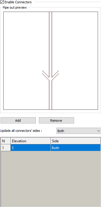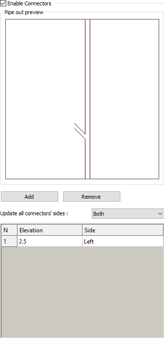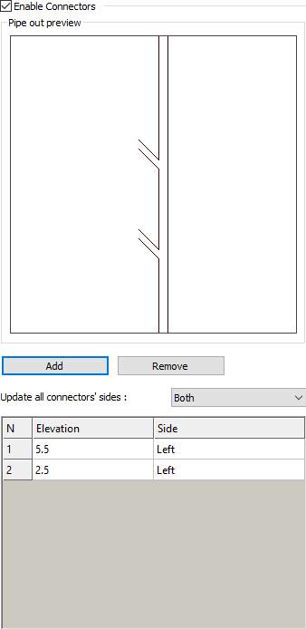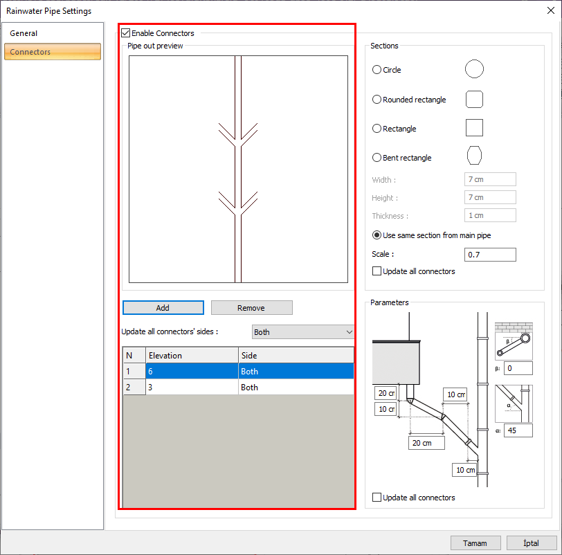 You can access the enable connectors feature from the connectors tab of the rainwater pipe settings dialog.