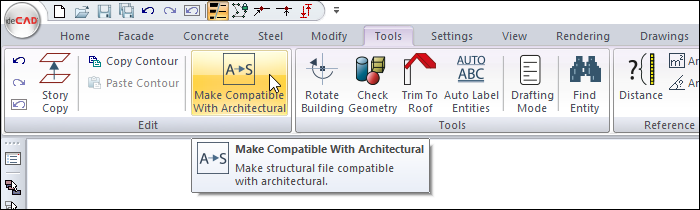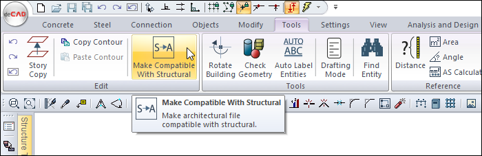 After opening the project , click the Make Compatible With Structural icon.