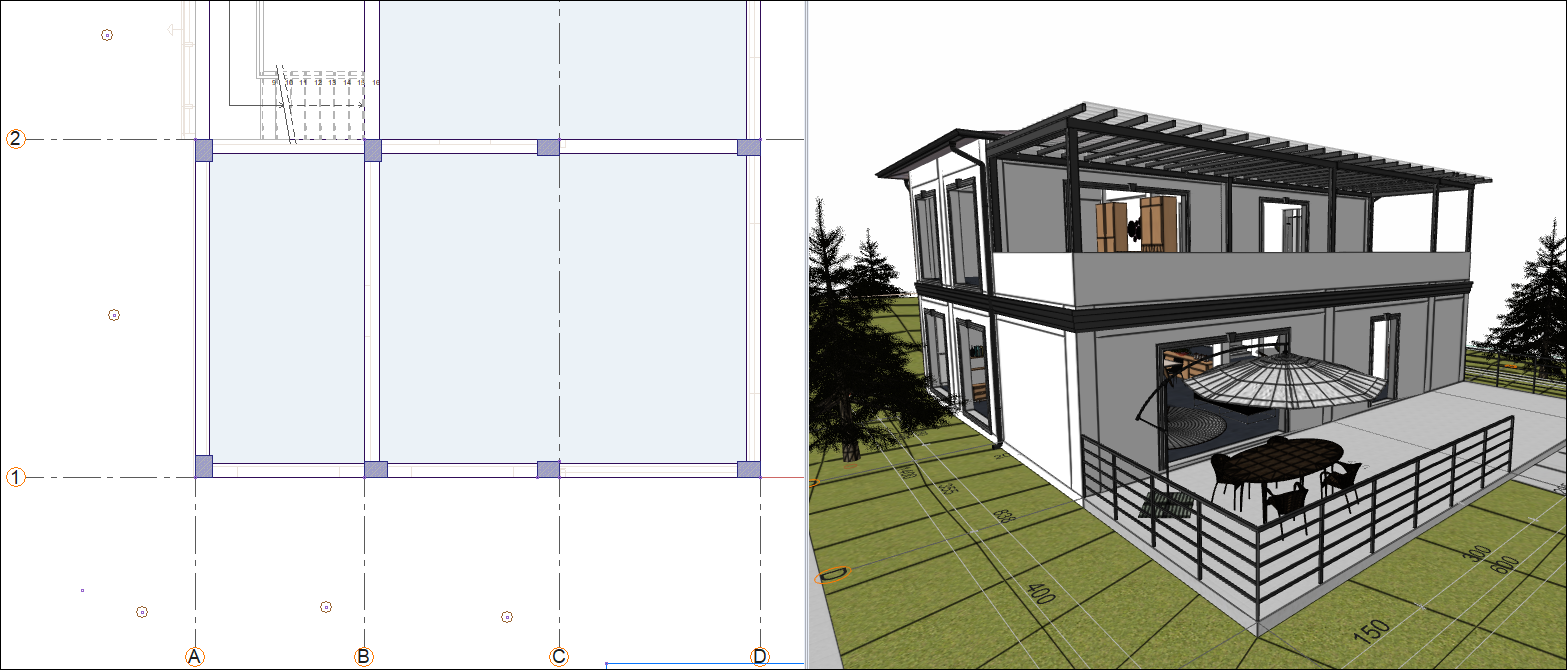 Thanks to Building Information Modeling, common data is studied in the architectural and structural projecting process. In the system that allows architects and engineers to work together on the same structure, the project is modeled once and "Full Integration" is achieved. Architectural plan and structural plan are two separate modes of operation within the same project and exactly overlap each other.