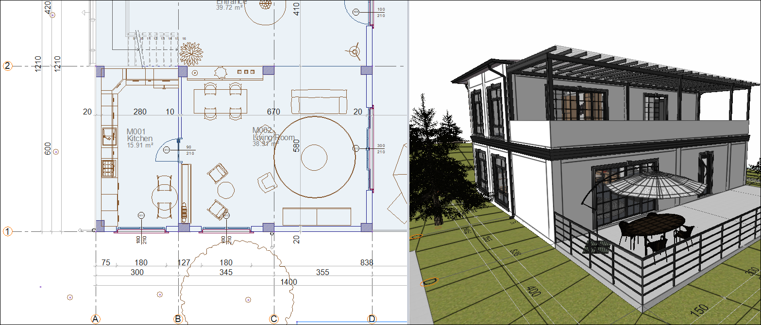 Layer settings are automatically arranged for both architectural and structural works in the same project file with the features of Make Compatible with Architecture and Make Compatible with Structural.