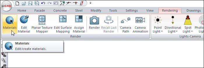 With the Materials command, existing materials and created new materials are displayed in the Material.