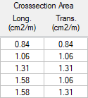 Crosssection area trans. ![]() The reinforcement area corresponding to the number of reinforcement in the most direction of the mesh wire appears. |