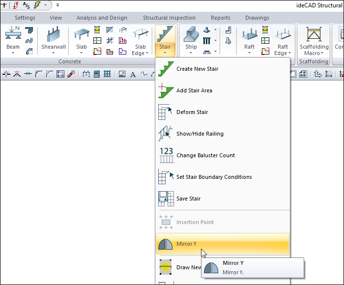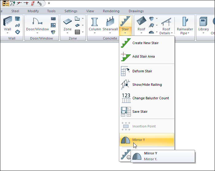 With the Mirror Y command, the object's symmetry with respect to the Y axis is taken at the drawing stage. Mirror Y command is used when drawing doors/windows and stairs.