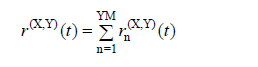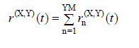 r n (X, Y) ( t ) = Typical modal response magnitude corresponding to any action magnitude (displacement, relative storey displacement, internal force component) in the nth vibration mode under the joint action of the (X) and (Y) earthquake ground motion components at the same time.