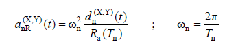 a nR (X, Y) ( t ) = Time-dependent linear modal pseudo-acceleration of the nth vibration mode under the joint action of (X) and (Y) earthquake ground motion components simultaneously[m / s 2 ]