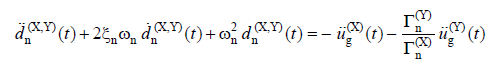 Linear modal displacement , d n (X, Y) ( t ) , under the combined effect of earthquake ground motion components (X) and (Y) simultaneously, the modal single degree of freedom system belonging to the nth mode in the time domain of the equation of motion given below It is obtained from the linear solution: