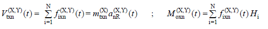 V txn ( X, Y) ( t ) = Simultaneously under the joint effect of (X) and (Y) earthquake ground motion components in the nth vibration mode, the variation of the modal base shear force with respect to time
