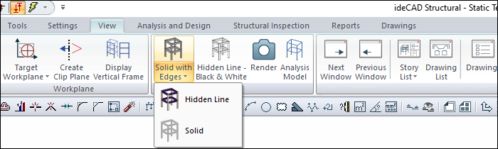 Click with the left mouse button on the lines of Hidden Line , Black and White Hidden Line , Solid Model or Solid with Edges from the menu that opens here. The relevant view window will switch to the selected display technique.
