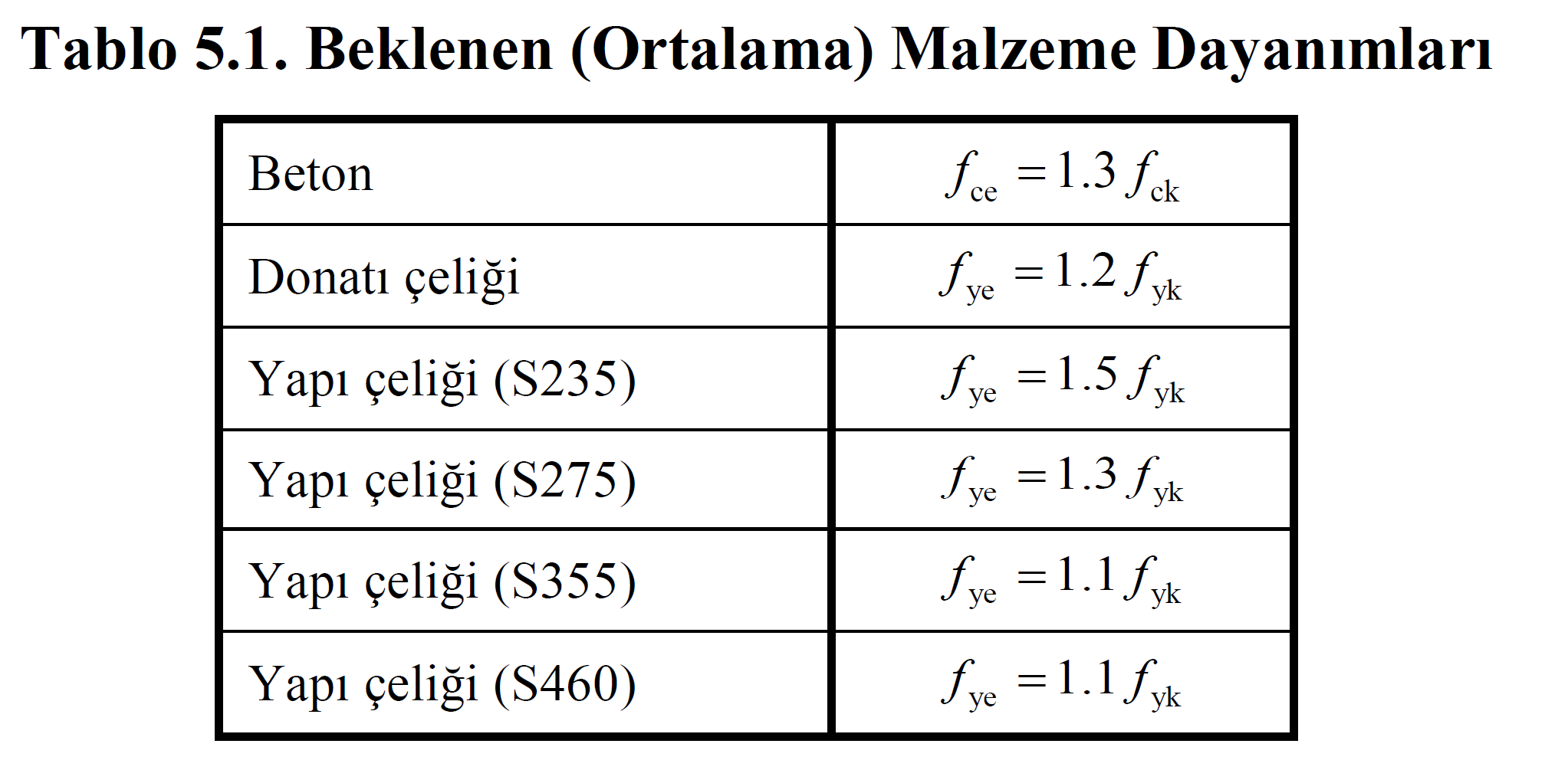 According to Article 5.4.1.5 (b) of TBDY, in the ŞGDT approach of new buildings, the material strength of concrete and reinforcement steel is based on the expected (average) strengths defined in Table 5.1 of the TBDK .