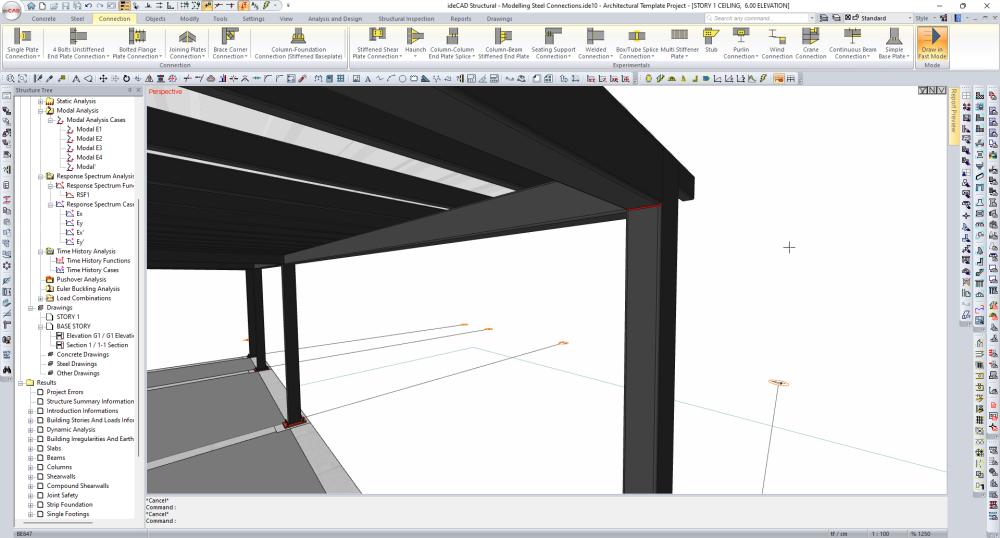 From the perspective view, click on the steel columns to define the combination named “Column Baseplate 1”.