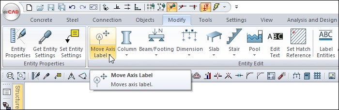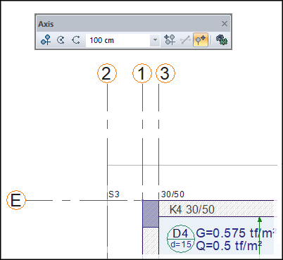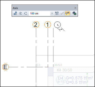 When the axes are close to each other, the axis circles may overlap and create confusion in the plan. To eliminate confusion, the axis circle and its text are moved to another location with the Move Axis Label command, and the drawings are edited.