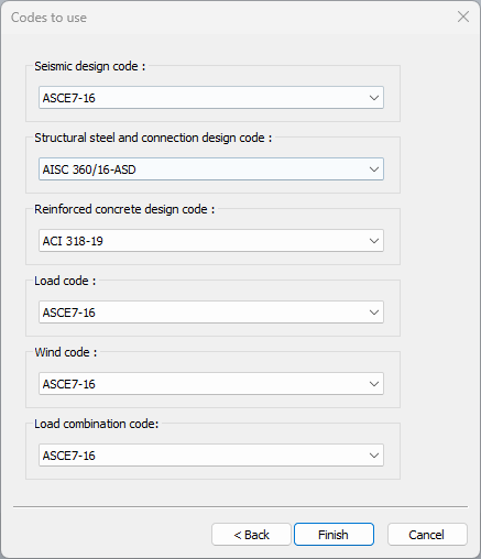 Load code ![]() According to the selected country, the load coda is selected. IBC for International; ASCE7-16, UBC 97, IBC for USA; TS 498 for Türkiye; ASCE7-16, UBC 97, IBC for Indonesia; ASCE7-16, UBC 97, IBC for the Dominican Republic; ASCE7-16, UBC 97, IBC for Thailand; ASCE7-16, UBC 97, IBC for the Philippines; ASCE7-16, UBC 97, IBC load codes for Pakistan are listed. |
