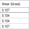 Shear (Gross) ![]() It is the ratio of shear force to capacity in gross section. |