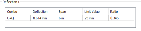 Deflection ![]() Combo: It is the combination that creates the most unfavorable section forces. |