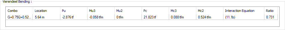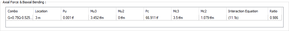 PMM ratio ![]() It is the ratio of requirement to cross section capacity (PMM Ratio = Need/Capacity). |