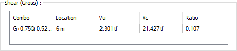 Shear (Gross) ![]() Combo: It is the combination that creates the most unfavorable section forces. |
