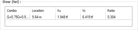 Shear (Net) ![]() Combo: It is the combination that creates the most unfavorable section forces. |