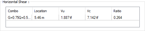 Horizontal shear ![]() It is the ratio of shear force to capacity in horizontal section. |